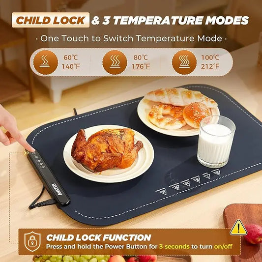 FOHERE Warming Mat for Food Full Surface Heating, 3 Modes Electric Heating Tray Keep Food Warm or Defrost