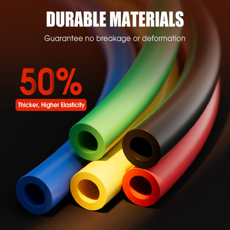 PREMIUM, TEAR-RESISTANT LATEX - Crafted from thickened natural latex that is durable, tear-resistant, and has excellent rebound strength. Bands retain their shape, ensuring long-lasting performance even under intense usage.