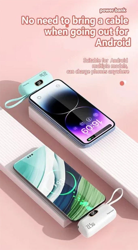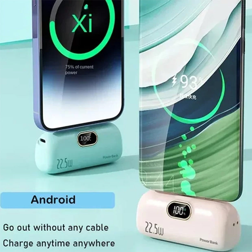 5000mAh mobile phone mini power bank, 22.5W three-output digital display fast charger, lightweight and compact.