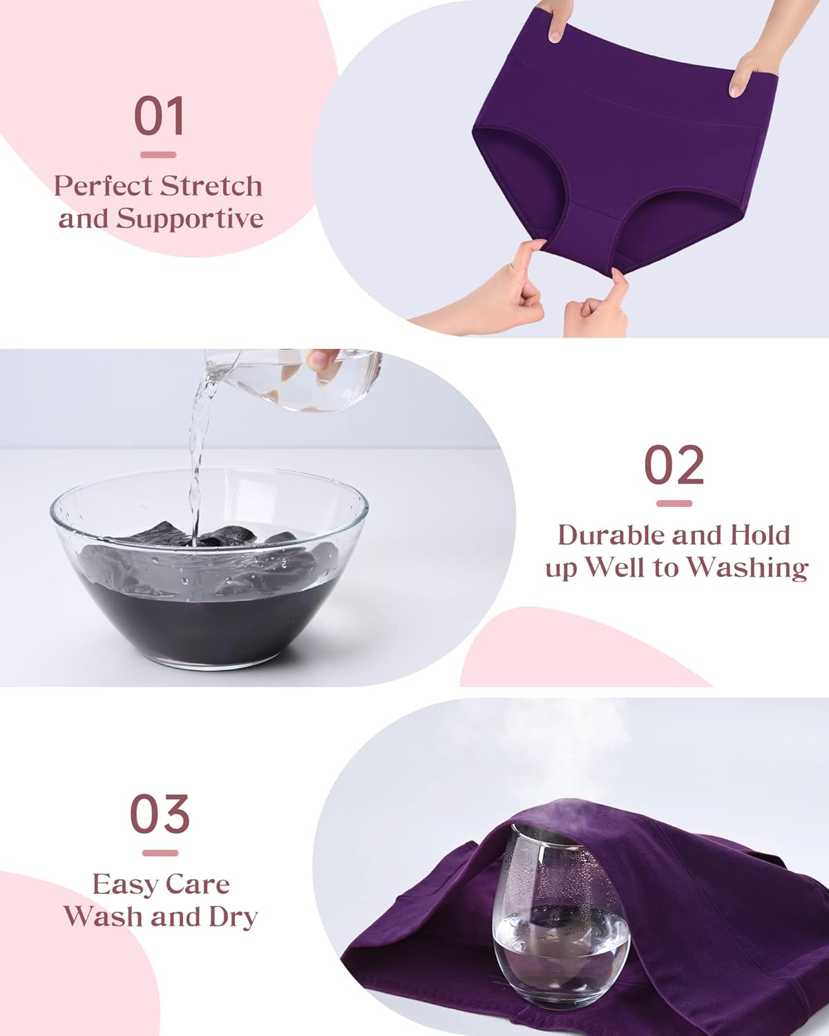 PURE COTTON FABRIC: These panties are made of soft and skin-friendly cotton fabric, offering exceptional comfort, breathability, and moisture-wicking properties. It provides a comfortable and secure fit that stays in place all day.