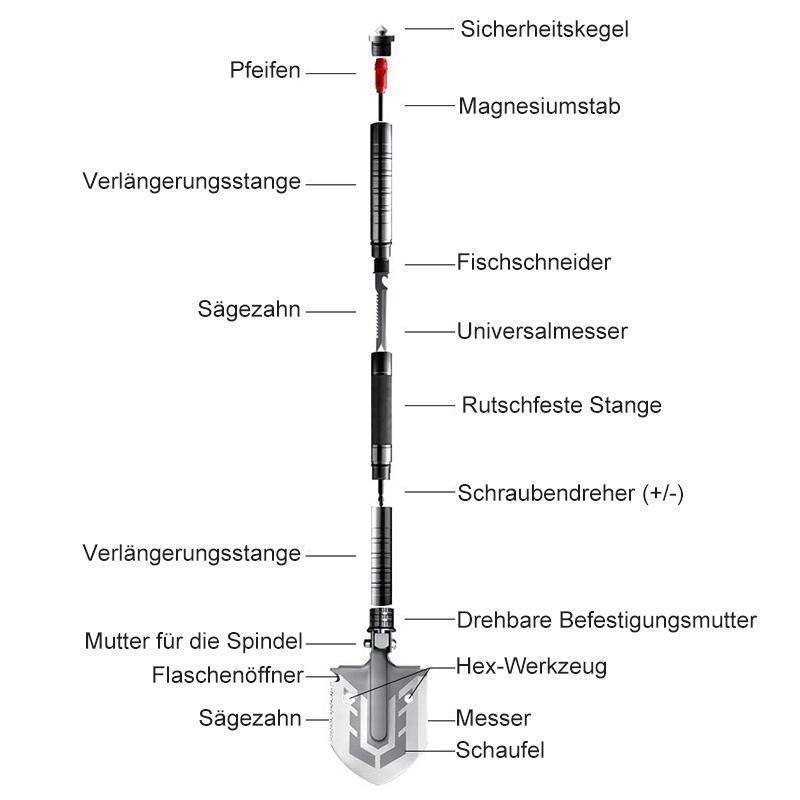As enthusiastic campers, we know how hard it can be to find good tools that last. We were always looking for ones that don't take up too much space in your backpack and are lightweight and easy to carry. This led us to create an entirely new tool, which we combined into a robust, lightweight, and durable shovel.