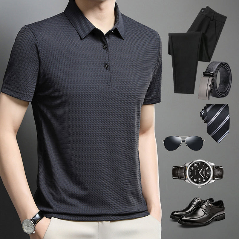 1* Men's Breathable Cool Lapel Short Sleeve T-Shirt