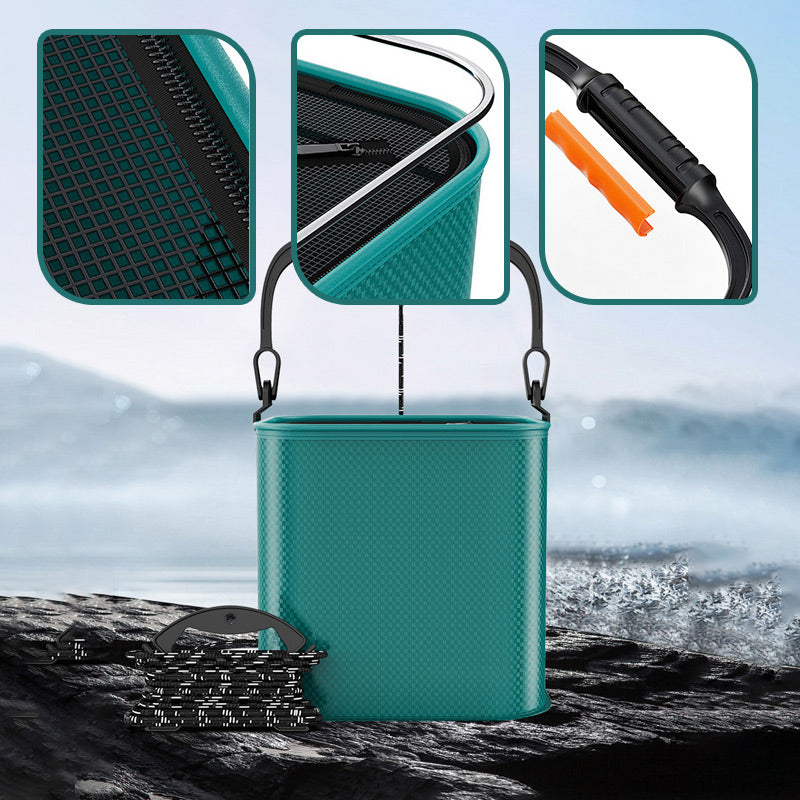 The bucket features a zipper for secure closure, ensuring the containment of your belongings. The sturdy handle allows for comfortable carrying, while the large capacity provides ample space for storage. Crafted with durability in mind, this fishing bucket is built to withstand the rigors of outdoor use. Embrace the convenience and functionality of our multipurpose bucket.