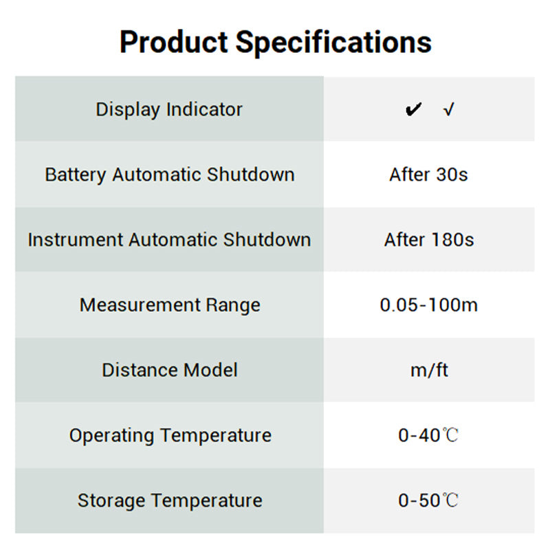 Package Includes: 1* Laser Distance Meter+1* User Manual