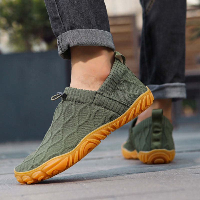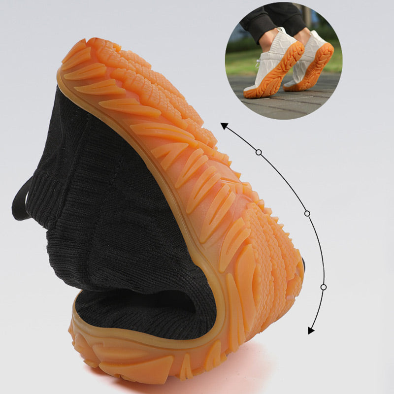 NON-SLIP TPR RUBBER SOLE:The zero-drop, thickened rubber sole evenly distributes impact, reduces foot load, and provides excellent cushioning. The contoured footbed offers arch support, while the non-slip grooves ensure stability on various surfaces.