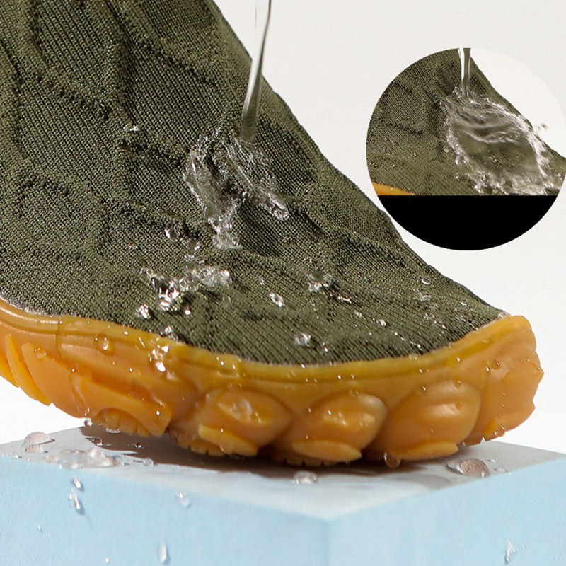 WATERPROOF & FLEXIBLE UPPER:Designed with a lotus leaf waterproof membrane, the upper prevents rainwater from penetrating while maintaining breathability. The stretchy mesh material enhances flexibility and ensures a relaxed fit.