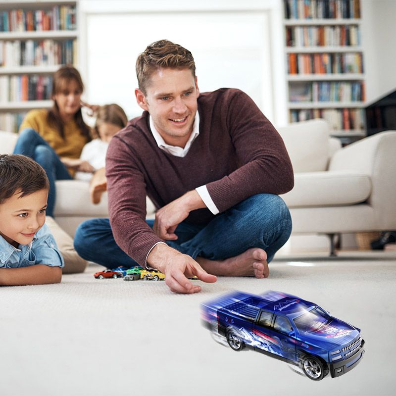 HIGH-PERFORMANCE DESIGN: Equipped with professional anti-skid tires and a potent motor, this mini off-road car excels on any terrain, whether on the floor or carpet, turning or climbing. The realistic headlights and taillights enhance an immersive experience.