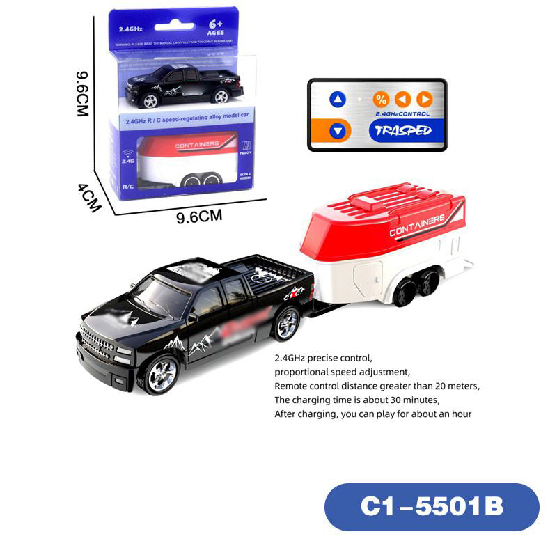 IDEAL GIFT CHOICE: The perfect festive or birthday gift, this RC car combines thrilling action with the charm of a collectible. Includes car, trailer, remote control with battery, USB-C cable, and user guide, ready to delight any child.