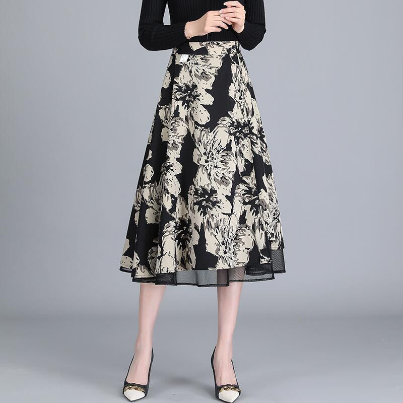 ARTISTIC FLORAL PRINT OVERLAY: Features a delicate floral mesh overlay that adds depth and sophistication. The layered texture gives this skirt a three-dimensional elegance, enhancing your outfit with a touch of romantic flair.